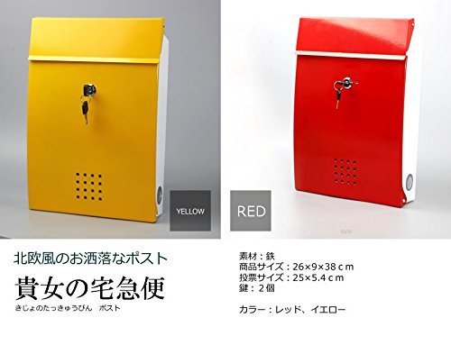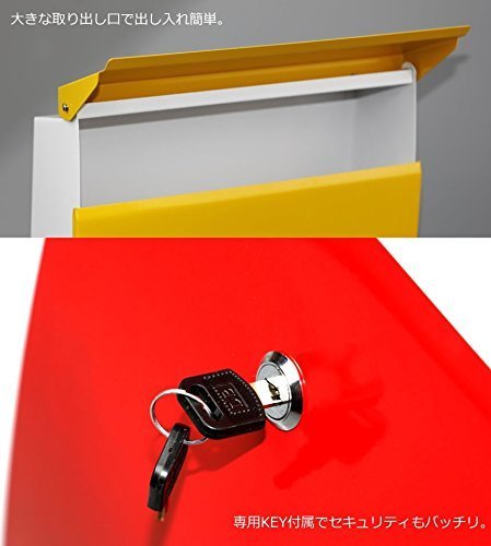 【 専用鍵付属で安心 】 お洒落 デザイン 北欧風 ポスト メールボックス ワンタッチ 開閉簡単 大容量 便利 【 レッド 】