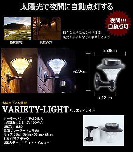夜間 自動点灯 2WAY 仕様 ソーラー LED ライト 【ホワイト】 光 センサー 搭載