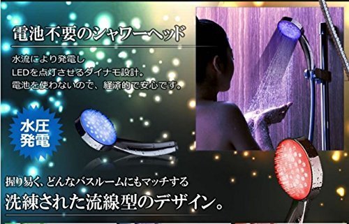 3色に変化する LEDシャワー 水圧で発電!!エコ
