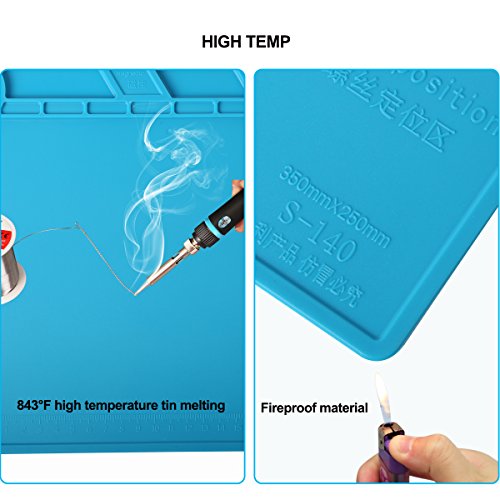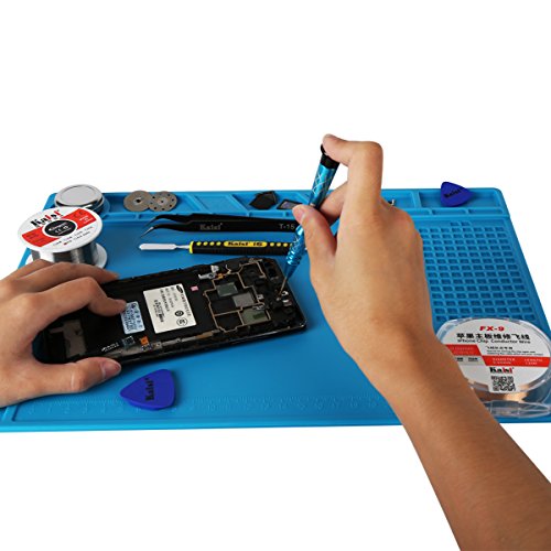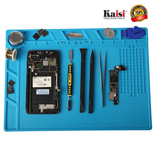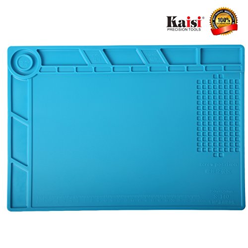 Kaisi s-130断熱シリコンマット修理キット、耐熱性メンテナンスデスクマット、はんだの鉄、電話、コンピュータの修復、は折り畳みand Easy to Carry ブルー KS140