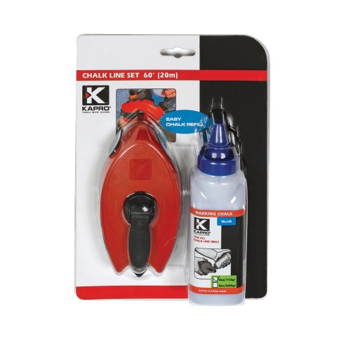 This classically designed chalk line has a durable grip body. Packaged as a set with a 4 oz. blue chalk bottle. Contains easy refill mechanism to avoid spillage.