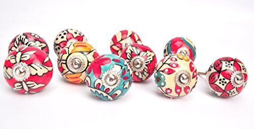 Karmakara Ornateレッド花柄セラミックノブキャビネットの&食器棚 – Hand Painted Pulls