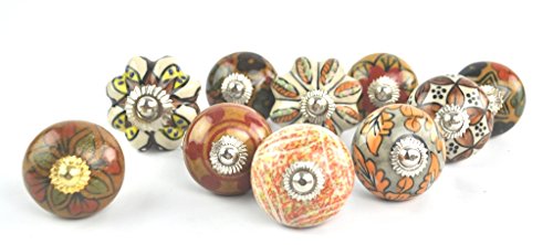 セットof 10マルチカラーフローラルセラミック食器棚キャビネットノブ引き出しPulls Small 1.5 "直径