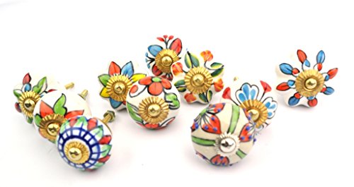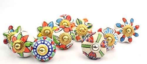 セットの10カラフルなフラワーとリーフドア食器棚キャビネットノブ引き出しPulls Small 1.5?"直径