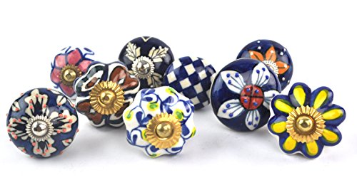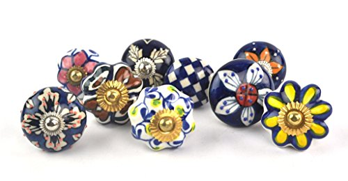8のセットブルー花柄ドア食器棚キャビネットノブ引き出しPulls Small 1.5 "直径