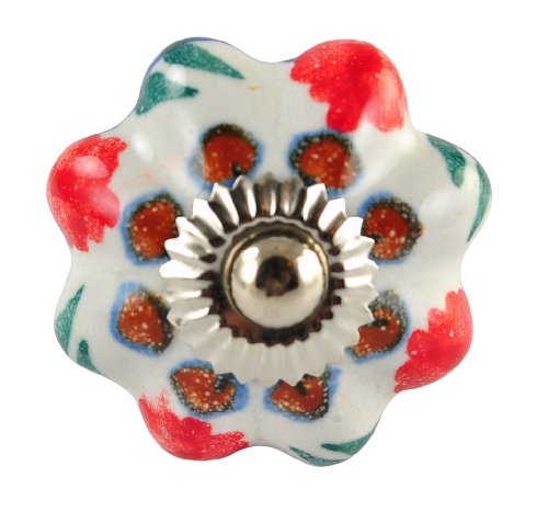 This exquisite ceramic door knob is hand made in Rajasthan, india by skilled artisans. The blue pottery of india is famous throughout the world for its quirky cheerful designs. The wide variety allows you to accessorize to your hearts content. The knobs are 1.5 inch in diameter and 1.5 inch in depth . The brass hardware required to install comes standard with each knob. Installation is easy! Just drill an 1/8 " hole in the cabinet door and tighten the nut with a spanner. Disclaimer: Our Products are handmade to order for you. Although our artisans strive for consistency, The slight differences from piece will always be there and add to the charm of handmade products. Buy with confidence: We have a 14 days 100% money back guarantee Disclaimer : All our products are exquisitely handmade, one piece at a time, using natural made products. It is therefore quite difficult if not impossible to make identical items. Even though we have the most attentive artisans who are the "Masters" of their respective crafts, and even though every effort is made to create only the best, there may be natural blemishes that should not be misconstrued as flaws. These are what make each piece of a handmade product charming and unique. The pictures may not be identical to the product you receive.