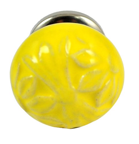 This exquisite ceramic door knob is hand made in Rajasthan, india by skilled artisans. The blue pottery of india is famous throughout the world for its quirky cheerful designs. The wide variety allows you to accessorize to your hearts content. The knobs are 1.5 inch in diameter and 1.5 inch in depth . The brass hardware required to install comes standard with each knob. Installation is easy! Just drill an 1/8 " hole in the cabinet door and tighten the nut with a spanner. Disclaimer: Our Products are handmade to order for you. Although our artisans strive for consistency, The slight differences from piece will always be there and add to the charm of handmade products. Buy with confidence: We have a 14 days 100% money back guarantee Disclaimer : All our products are exquisitely handmade, one piece at a time, using natural made products. It is therefore quite difficult if not impossible to make identical items. Even though we have the most attentive artisans who are the "Masters" of their respective crafts, and even though every effort is made to create only the best, there may be natural blemishes that should not be misconstrued as flaws. These are what make each piece of a handmade product charming and unique. The pictures may not be identical to the product you receive.