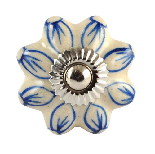 This exquisite ceramic door knob is hand made in Rajasthan, india by skilled artisans. The blue pottery of india is famous throughout the world for its quirky cheerful designs. The wide variety allows you to accessorize to your hearts content. The knobs are 1.5 inch in diameter and 1.5 inch in depth . The brass hardware required to install comes standard with each knob. Installation is easy! Just drill an 1/8 " hole in the cabinet door and tighten the nut with a spanner. Disclaimer: Our Products are handmade to order for you. Although our artisans strive for consistency, The slight differences from piece will always be there and add to the charm of handmade products. Buy with confidence: We have a 14 days 100% money back guarantee Disclaimer : All our products are exquisitely handmade, one piece at a time, using natural made products. It is therefore quite difficult if not impossible to make identical items. Even though we have the most attentive artisans who are the "Masters" of their respective crafts, and even though every effort is made to create only the best, there may be natural blemishes that should not be misconstrued as flaws. These are what make each piece of a handmade product charming and unique. The pictures may not be identical to the product you receive.