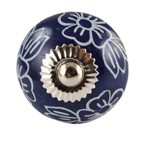 This exquisite ceramic door knob is hand made in Rajasthan, india by skilled artisans. The blue pottery of india is famous throughout the world for its quirky cheerful designs. The wide variety allows you to accessorize to your hearts content. The knobs are 1.5 inch in diameter and 1.5 inch in depth . The brass hardware required to install comes standard with each knob. Installation is easy! Just drill an 1/8 " hole in the cabinet door and tighten the nut with a spanner. Disclaimer: Our Products are handmade to order for you. Although our artisans strive for consistency, The slight differences from piece will always be there and add to the charm of handmade products. Buy with confidence: We have a 14 days 100% money back guarantee Disclaimer : All our products are exquisitely handmade, one piece at a time, using natural made products. It is therefore quite difficult if not impossible to make identical items. Even though we have the most attentive artisans who are the "Masters" of their respective crafts, and even though every effort is made to create only the best, there may be natural blemishes that should not be misconstrued as flaws. These are what make each piece of a handmade product charming and unique. The pictures may not be identical to the product you receive.