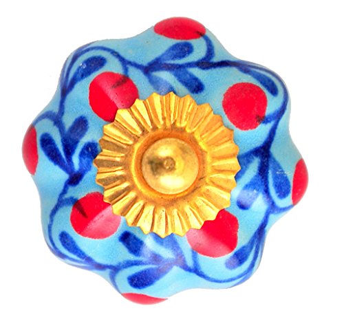 This exquisite ceramic door knobs are hand made in Rajasthan, india by artisans. The blue pottery of india is famous throughout the world for its quirky cheerful designs. The wide variety allows you to accessorize to your hearts content. The knobs are spherical with a diameter of 1.5 inches. There is no additional hardware required for installation. Installation is easy! Just drill an 1/8 " hole in the cabinet door and tighten the nut with a spanner. Disclaimer: Our Products are handmade to order for you. Although our artisans strive for consistency, The slight differences from piece will always be there and add to the charm of handmade products. Buy with confidence: We have a 14 days 100% money back guarantee
