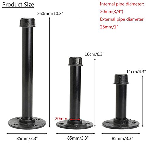 katoot @ヴィンテージレトロブラック鉄工業パイプシェルフブラケットホルダーS / M / Lブラケット壁フローティングシェルフホームインテリアストレージホルダー 16CM