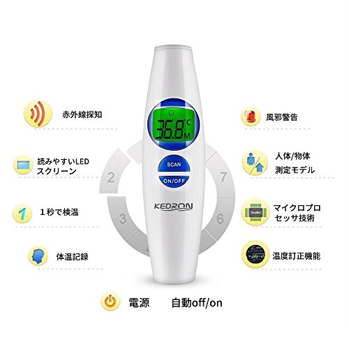 KedronCare 赤外線放射温度計 体温計 赤ちゃん 非接触体温計 赤外線体温計 デジタル体温計 0.5秒瞬間計測 人体・物体の表面温度測定 ボディおでこ ベビー 子供 熱 風邪 耳 食品 ミルク 風呂のお湯など適用