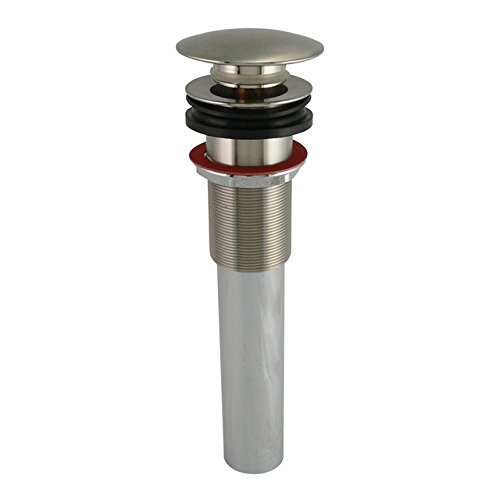 1-1/4" tailpiece with brass body. Spring loaded stopper. No overflow or linkage for exposed plumbing. Decorative Vessel Sink Pop Up with brushed nickel finish. Brass body with spring loaded stopper and 1-1/4" tailpiece. Designed with no overflow or linkage for installations featuring exposed plumbing.