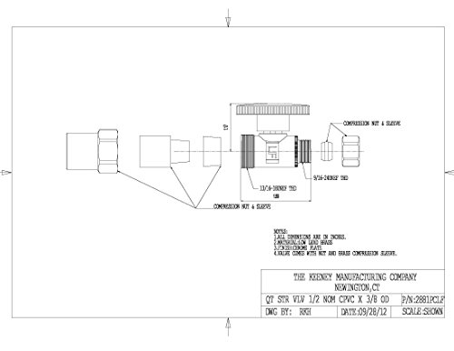 Keeney 2881PCLF 1/2-Inch Nom CPVC by 3/8-Inch O.D. Lead Free Quarter Turn Straight Transition Valve, Chrome by Keeney Manufacturing