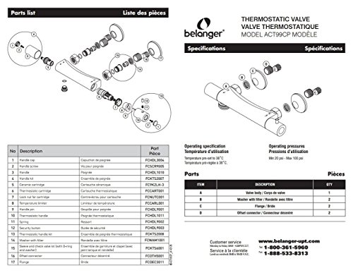Belanger SYM002TSCCP Thermostatic Valve with Hand Shower Sliding Bar Kit, Polished Chrome [並行輸入品]
