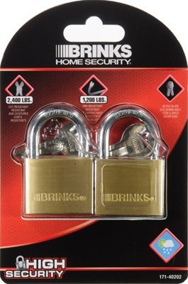 brinksホームセキュリティを確保するために、2パック、1 – 9 / 16 "ソリッド真鍮ボディ南京錠, keyed alike , 4ピンタンブラー、真鍮シリンダー,ダブルロッキング・表面の硬化クロム・メッキの鋼シャックル、シャックルの長さ、1 / 4 "シャックル径7 / 8 "、Visual pack。
