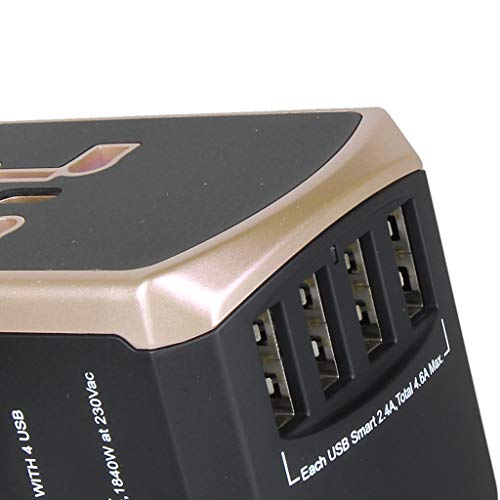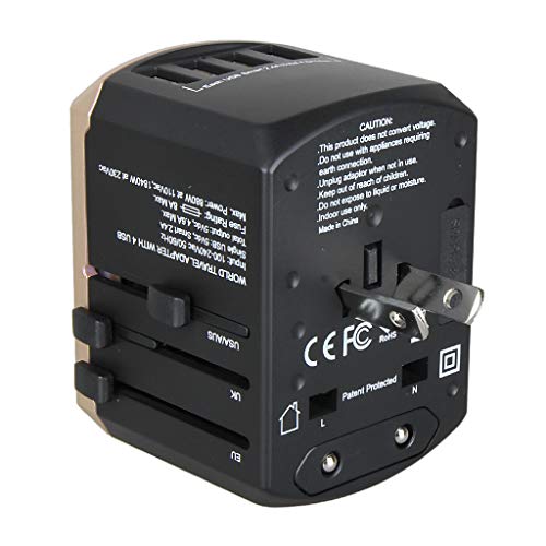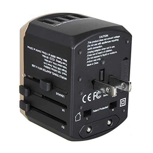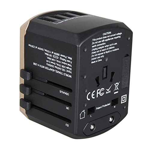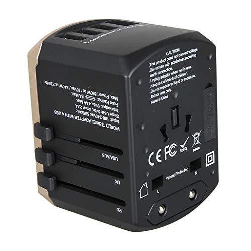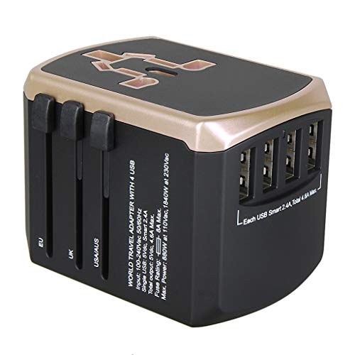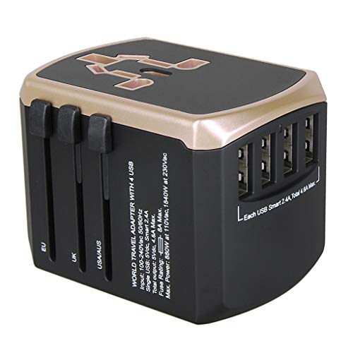 Kesoto ユニバーサルトラベルアダプターオールインワンインターナショナルトラベルUSB充電器 - ゴールド