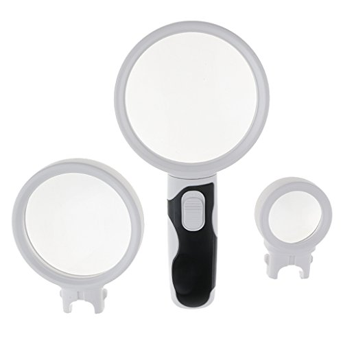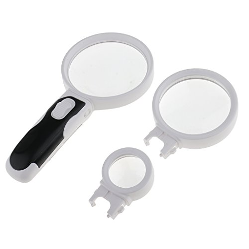 Kesoto 高品質 3種類 交換レンズ 拡大鏡 LEDライト付き ハンドヘルド ルーペ 軽量