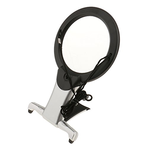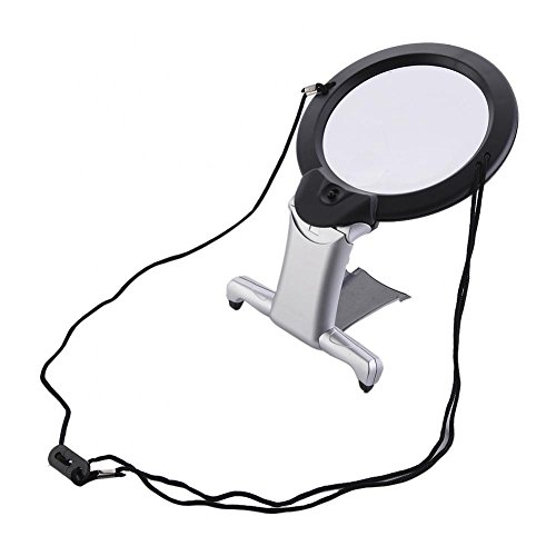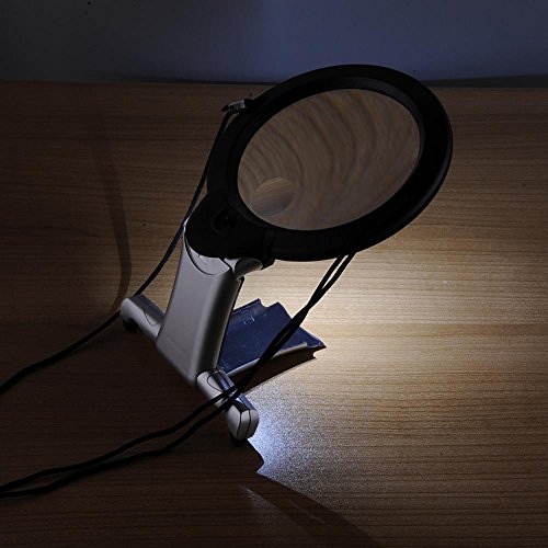 Kesoto 高品質 拡大鏡 デスクトップ ぶら下げ 趣味用具 読書援助 ハンズフリー 2倍/6倍 首掛けタイプ LED付き