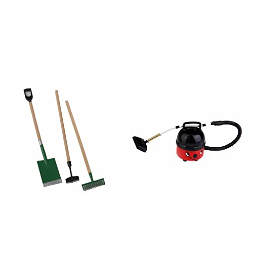 - グレートミニチュア真空掃除機+ 3個のガーデンツール、1:12ドールハウス用