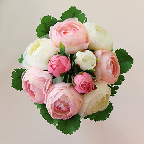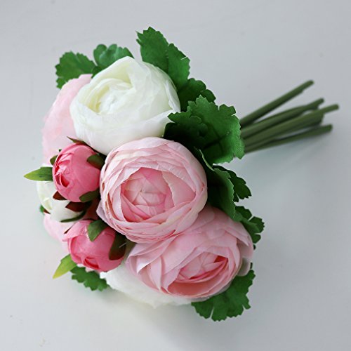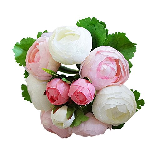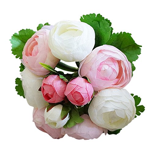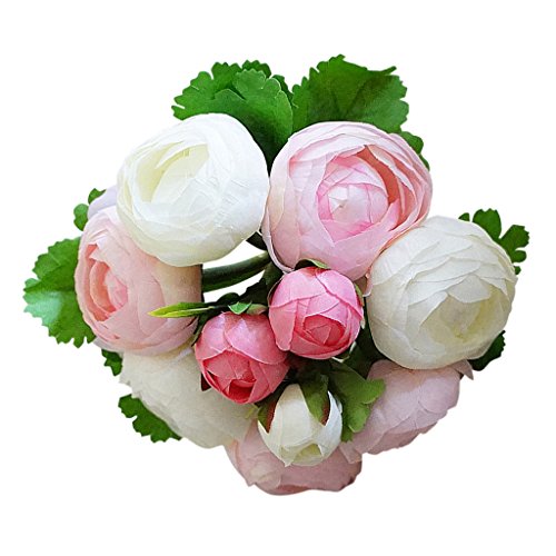 Kesoto シルク製 造花 椿 山茶花 結婚式 ウェデイング用 花嫁 ブーケ 花束 全4色 - ホワイト+ピンク