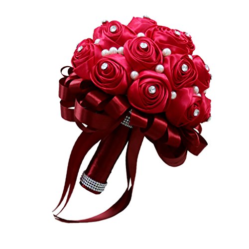 Kesoto 花嫁 ブーケ ワインレッド バラ 人工パール フラワー ガール手すり 花束 結婚式 場所の装飾 薔薇 花束 結婚式 パーティーグッズ イベント 誕生日 プレゼント
