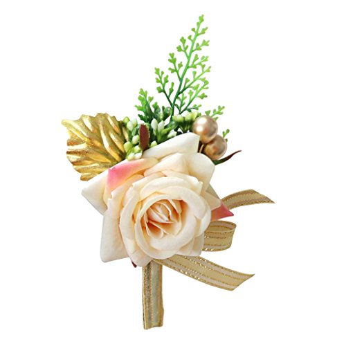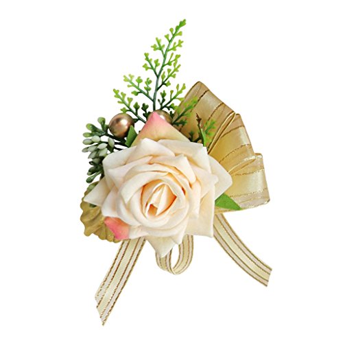 Kesoto ウェディングコサージュ 花嫁 人工のバラ 花 結婚式 コサージュ 5色選べる - シャンパン