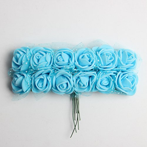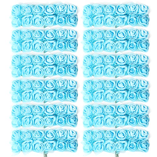 Kesoto 約144個 ミニチュアローズ フラワー 人工小型泡 花 造花 結婚式 花束 DIY 工芸品 装飾 バラ 多色選べる - 空色