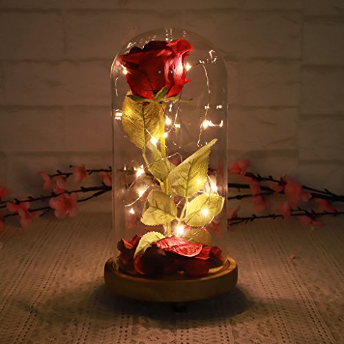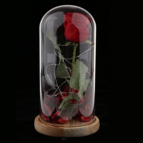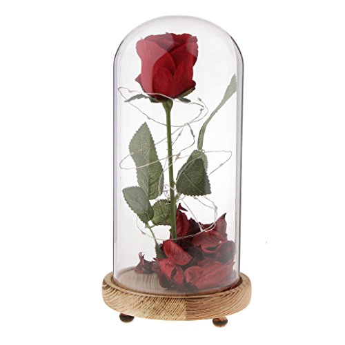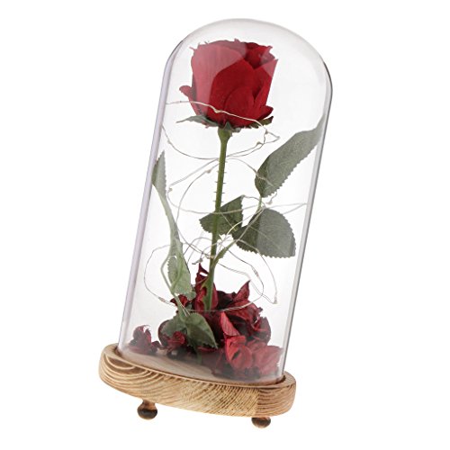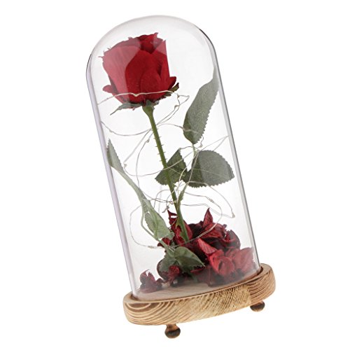 Kesoto ローズフラワー 造花 LEDガラス ディスプレイ ロマンチック バラの花 結婚式 バレンタインデー