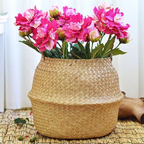 Kesoto 北欧海藻織物 フラワーストレージバスケット ボックス 手作り フラワーベース 折りたたみ 部屋 装飾品 M + S