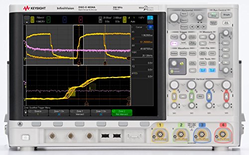 InfiniiVsion 4000Xシリーズ 新・定番 タッチ・オシスコープ: DSOX4034Aは、300MHz帯域,4チャンネル入力、最大サンプリングレート5GSa/s(2ch時),標準4Mメモリを搭載したオシロスコープです。また、業界最速の波形更新速度 100万回/秒を実現、不具合信号を確実の取れえることが出来ます。 されに波形を囲んで選ぶだけで、トリガーをかけることができるゾーンタッチ・トリガー機能が搭載されています。 その他 豊富なオプション機能が用意されています(アップグレードも可能です)。 標準付属品として、N2894A (700MHz)プローブ(4本)、日本語フロント・パネル、ユーザガイドが添付されています。