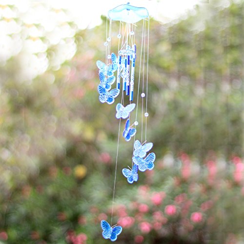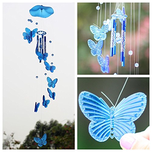 Kicode 蝶の風チャイム インテリアハンギングガーデンオーナメントガーデンリビング (青)