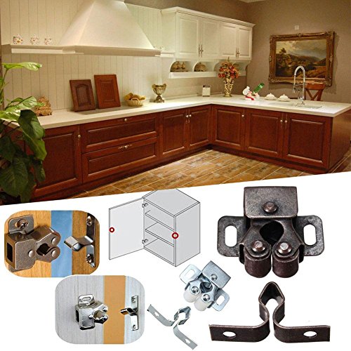 Kicode 10パック ダブルローラーキャッチ 食器棚 キャビネット ドアのラッチハードウェアステンレス鋼ホームキッチンツール