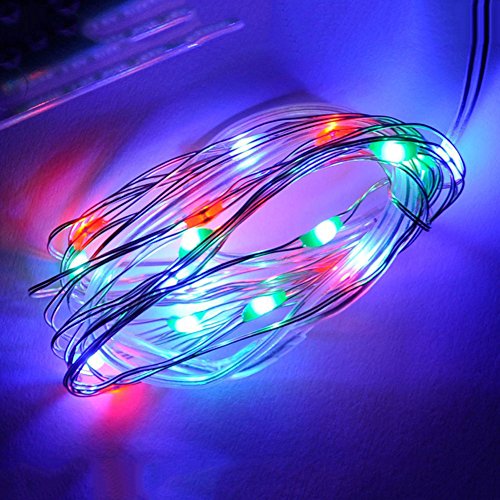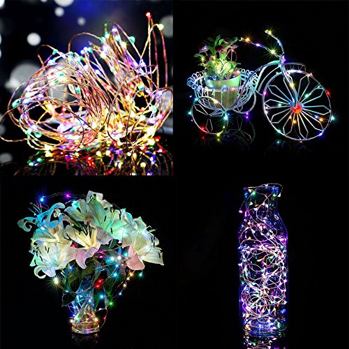 Kicode 10フィートのバッテリーは、カラフルなLEDストリングライトを運営しました 30の小型ブライトカラフルなLEDライト 3Mフレキシブルな銀被覆銅線上