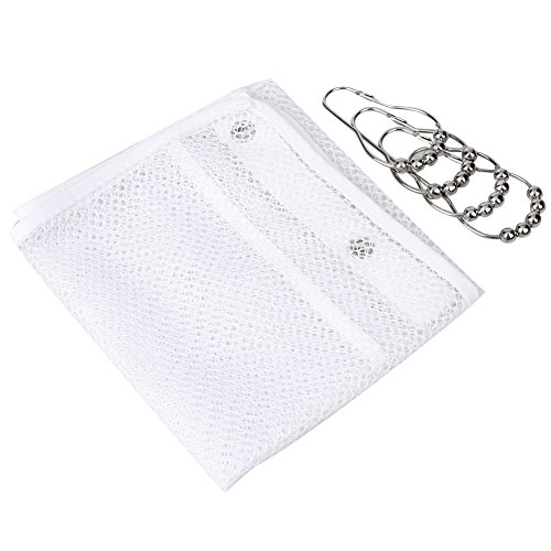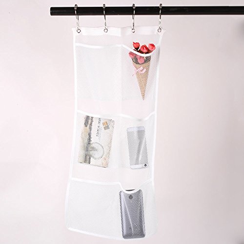 - この設定が簡単なオーガナイザーは、既存のカーテンフックを使用してシャワーカーテンロッドに簡単に掛けられます。