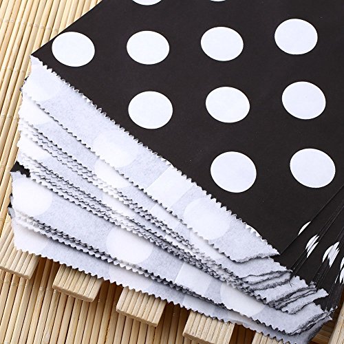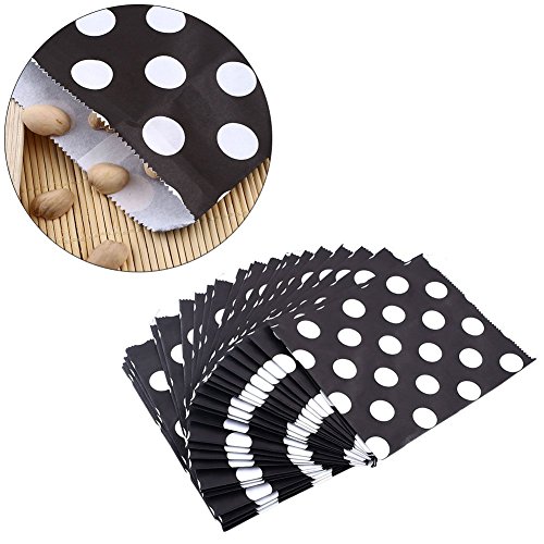 Kicode 25個 食品安全生分解性紙トリートサックス 食品安全インク&ペーパー パーティーのために (ブラックドット)