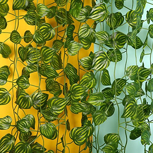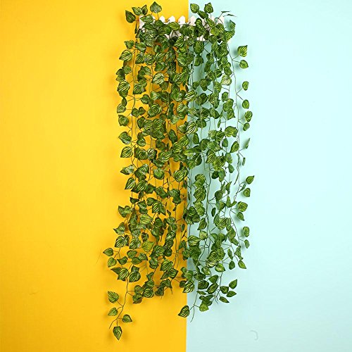 Kicode 2パック6.56FT人工アイビー&シルクフェイクアイビーは、結婚式のパーティーガーデンの壁の装飾のためのブドウの葉をぶら下がって葉を残す