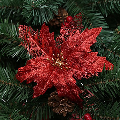 Kicode Christmas Tree Decorations Artificial Flowers Glitter Hollow Xmas Festival Wedding Home Decor Decals Fake Flowers 4 Colors