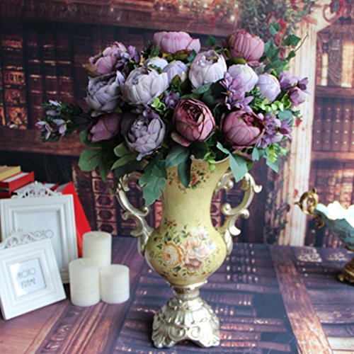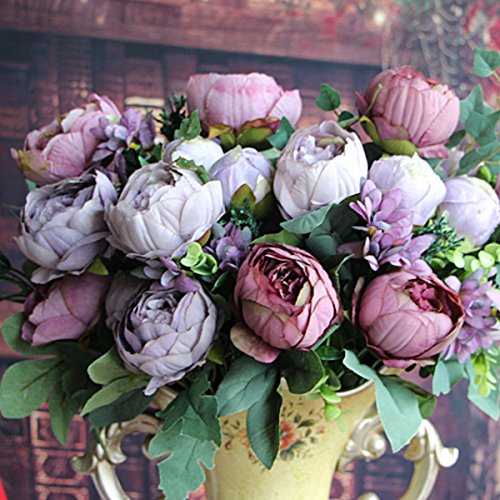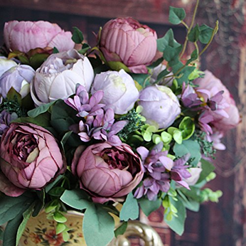TOPmountain 12頭 人工フェイク牡丹 シルクフローラル 絵画花 ブライダルブーケフラワー アレンジメントホーム ウェディングパーティーの庭