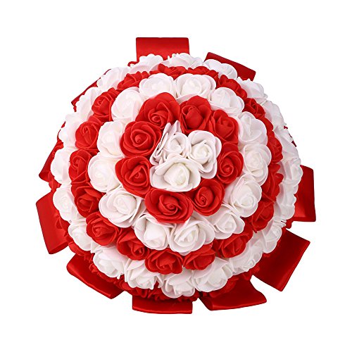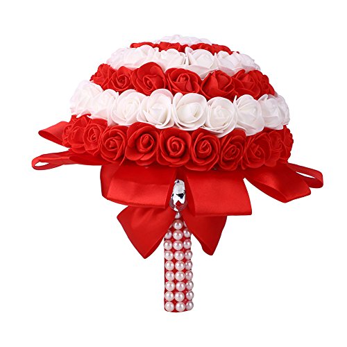TOPmountain シミュレーション 人工的な 花嫁ブーケシルクローズパール 偽の花 ウェディングパーティー用 ガーデンホーム 写真用品の装飾