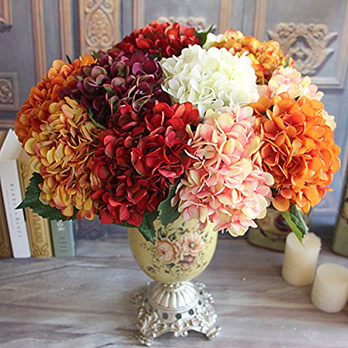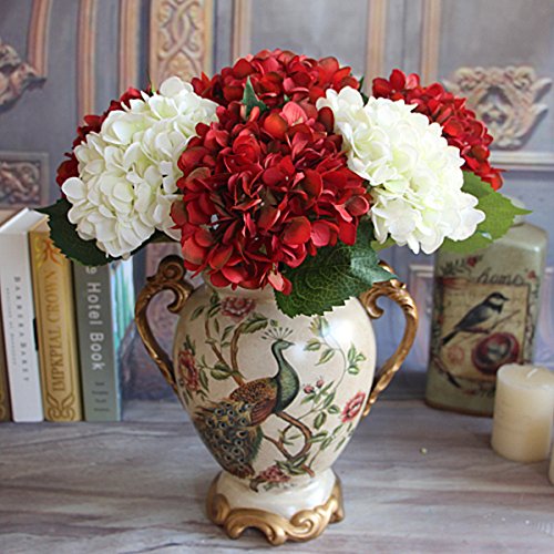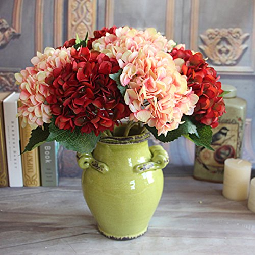 Kicode Rose Autumn Vintage ワインレッド 人工シルク 牡丹 フラワーアレンジメントブーケ アジサイウェディング ホールド花の装飾