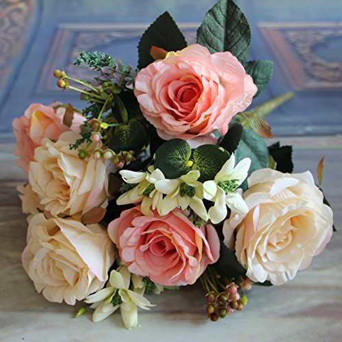 寝室、机など - 全長:45cm / 17.72 '' - 素材:シルククロス - カラー:ピンク - 注:1個のバッチローズは7個の大きなローズヘッド(直径:8cm)、4個のグループフラワーアクセサリー。 あなたが写真の効果を得たい場合は、2-3束を購入する必要があります。