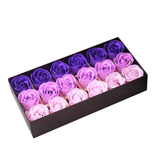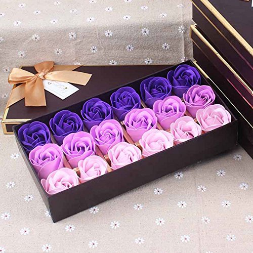 TOPmountain ギフトボックスでの18pcs /ボックスグラデーションパープルソープフラワー造花の香りのバスソープローズフラワーの花びら