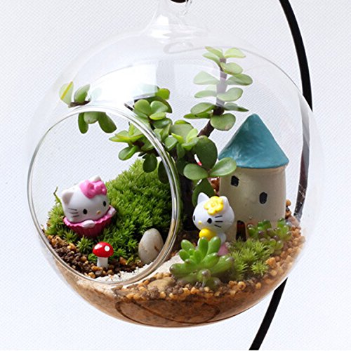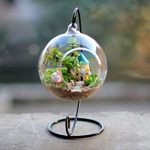 Kicode ラウンドをクリア ガラスの花瓶ハンギングボトル テラリウム水耕容器 ホームテーブルウェディングガーデンの装飾 ホルダー付き12cm