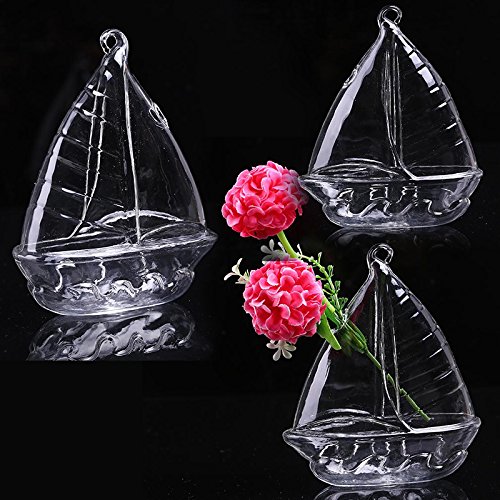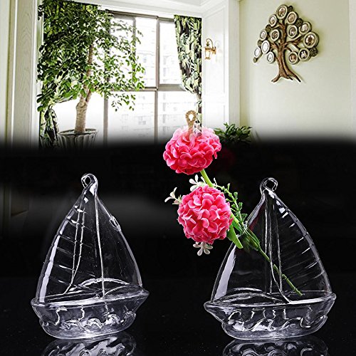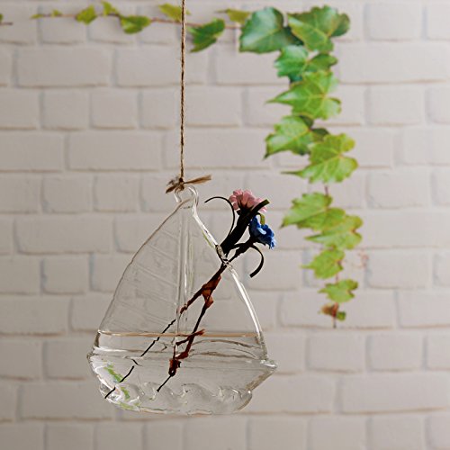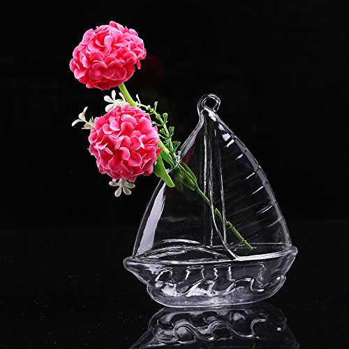 Kicode クリアセーリングシェイプ ガラスハンギング花瓶のボトル 水耕容器 植物ポット花DIY DIYのホームテーブルウェディングガーデンの装飾