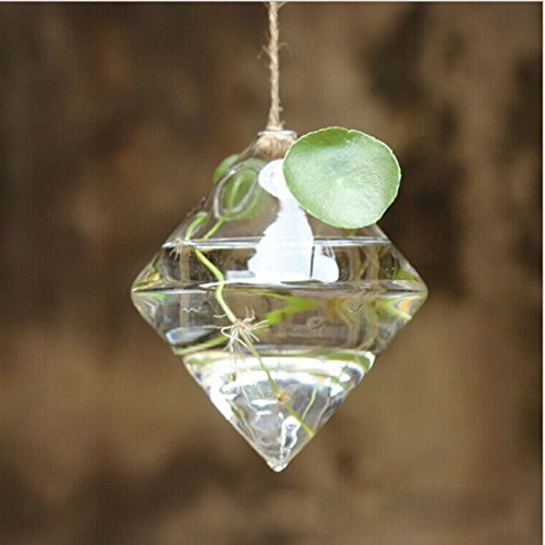 Kicode 2つの穴付き ホームや結婚式のために ガラスの花瓶 ダイヤモンドハンギング