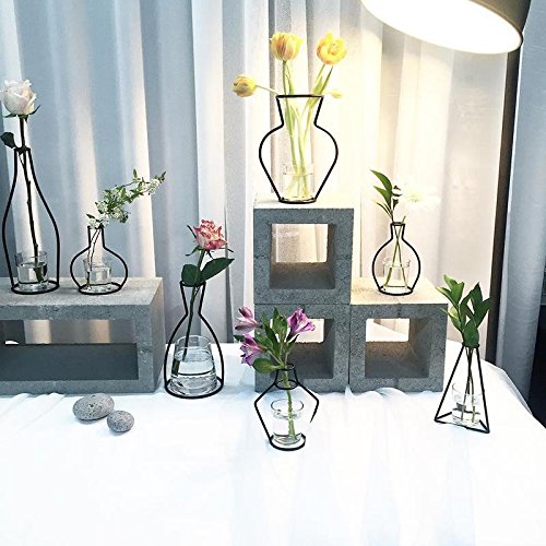 TOPmountain クリエイティブステッカーの装飾 DRIE花植物 アイアン棚 現代の概要 ガラスの花瓶 ホームガーデン