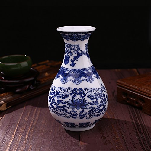 Kicode 見事なUntique 伝統的な 中国の 青と白の磁器 吉祥セラミック エレガントな飾り Eパターン