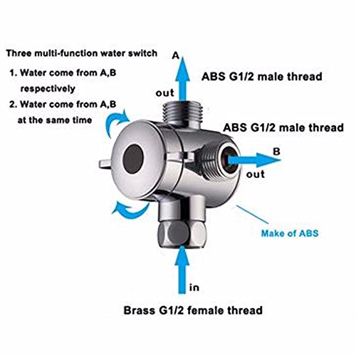 Kicode G1 / 2" バストイレビデ風呂 シャワーヘッド ダイバータABS 三方向 Tアダプタ水 バルブ