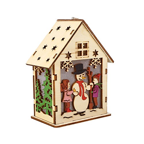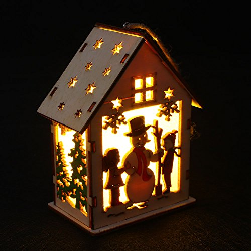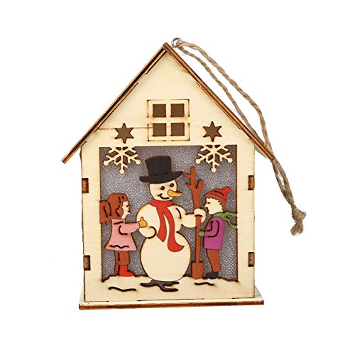 Kicode Xmas Colorful Christmas LED Light Luminous Wooden House Tree Hanging Ornament Pendant Baubles Decor